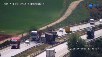 ACCIDENTE Reabiertos todos los carriles de la A-3 tras el incendio de dos camiones a la altura de Honrubia